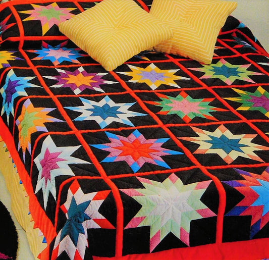 Vintage Sewing Pattern Classic Star Bed Quilt PDF Instant Digital Download Pretty Pieced Diamonds Bedspread Prairie Point Edge