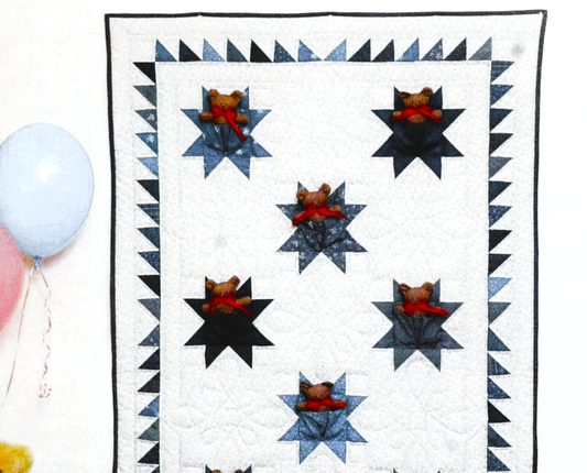 Vintage Sewing Pattern Denim Teddy Bear Pockets Quilt or Wall Hanging PDF Instant Digital Download Quilted Star Teddies Crib Twin Blanket