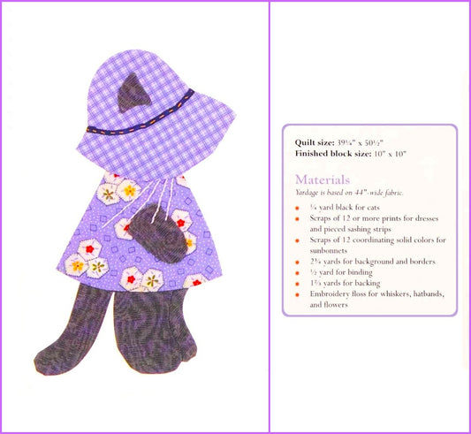 Vintage Sewing Pattern Cute Sunbonnet Sue Cats Quilt PDF Instant Digital Download Lap Quilt or Wall Hanging Kitty Applique Blocks 40x50
