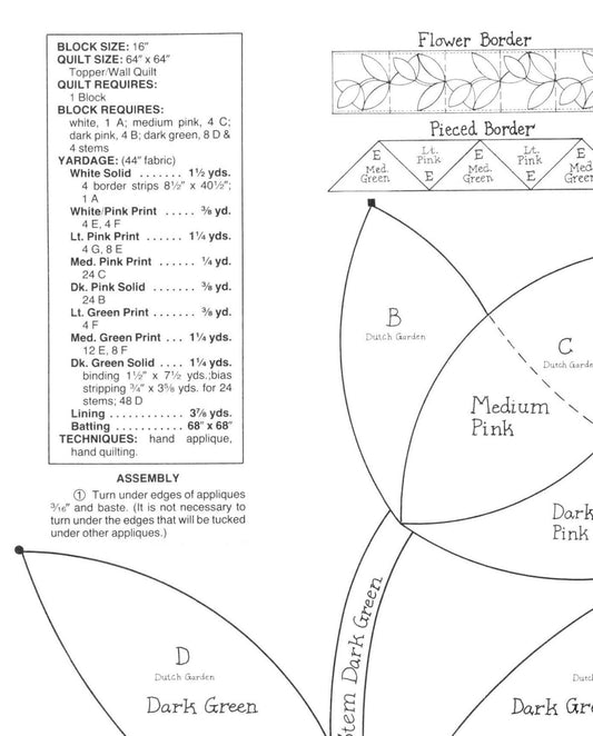 Vintage Sewing Pattern Dutch Tulip Flower Garden Bed Quilt PDF Instant Digital Download Patchwork Applique 64x64