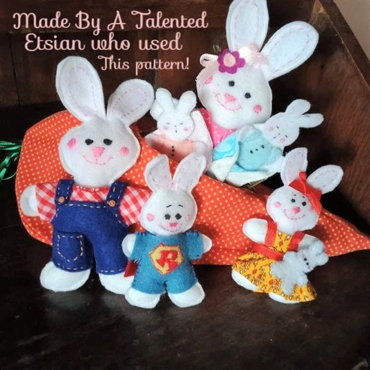 Vintage Sewing Pattern Felt Farmer Bunny Family in Carrot House Holder PDF Instant Digital Download Sewn Soft Toys
