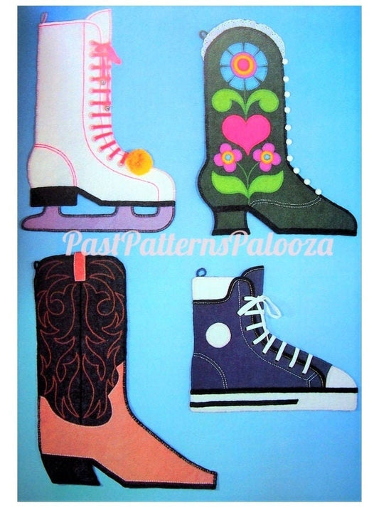 Vintage Sewing Pattern Fun Felt Novelty Christmas Stockings Ice Skate Cowboy Boot Victorian Shoe Hi Top Sneaker PDF Instant Digital Download
