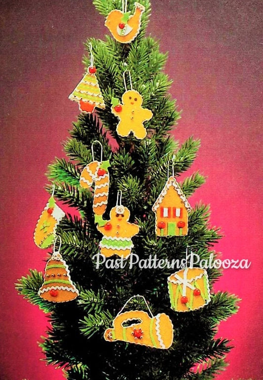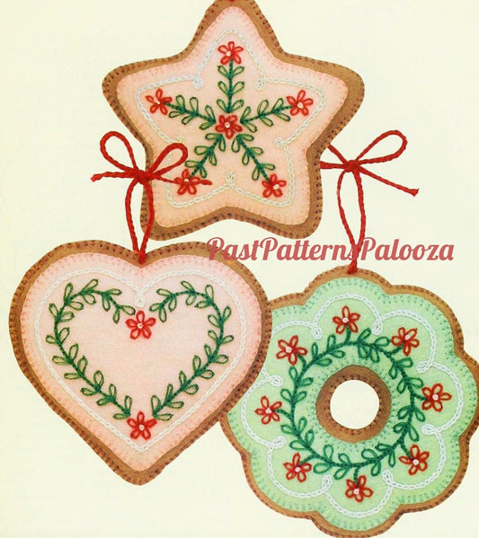 Vintage Sewing Pattern Frosted Sugar Cookies Felt Christmas Tree Ornaments PDF Instant Digital Download Embroidered Gingerbread Tree Decor