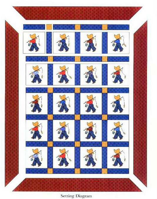 Vintage Sewing Pattern Fisherman Fred Bed Quilt PDF Instant Digital Download Little Boys Patchwork Applique Bedspread Sunbonnet 73x94