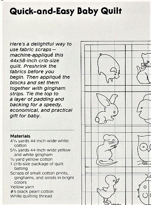 Vintage Sewing Pattern Gingham Animals Baby Quilt Quick and Easy Quilted Applique Crib Blanket PDF Instant Digital Download Patchwork Blocks
