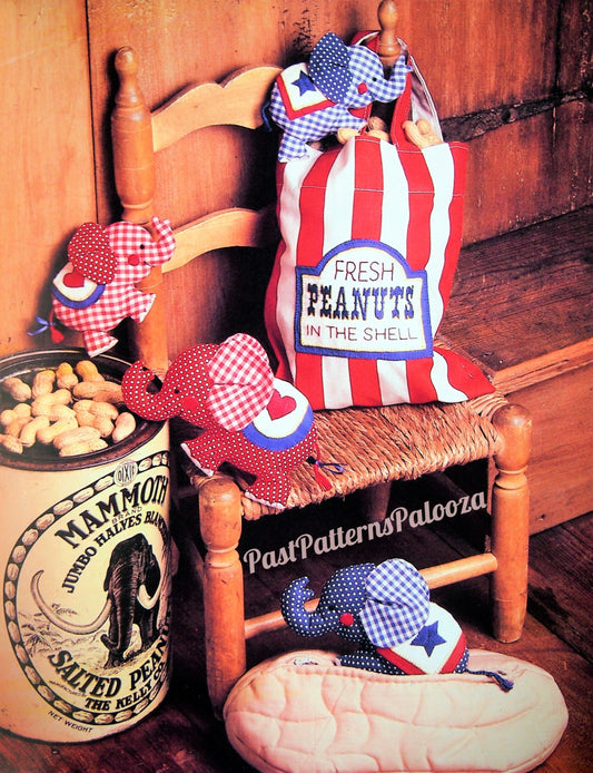 Vintage Sewing Pattern Polka Dot Gingham Elephant Family in Peanut House Holder & Tote Bag Play Set PDF Instant Digital Download Soft ToysRegular price $3.00Regular priceUnit price / per$0.00Sale price $3.00