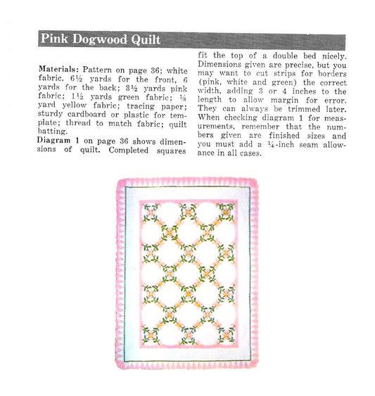 Vintage Sewing Pattern Pink Dogwood Bed Quilt Instant Digital Download Appliqued Flowering Tree Vines BedspreadRegular price $5.00Regular priceUnit price / per$0.00Sale price $5.00