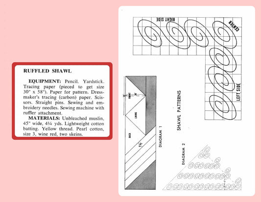 Vintage Sewing Pattern Womens Romantic Quilted Ruffled Shawl PDF Instant Digital Download Retro 70s Flirty Swirl Motifs Triangular Wrap