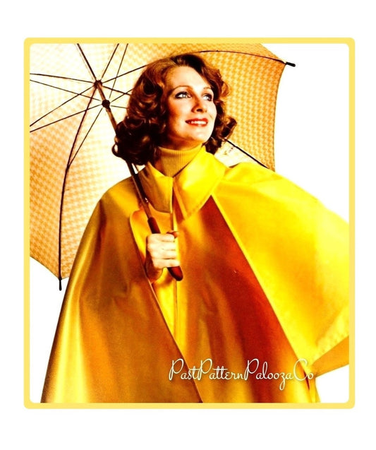Vintage Sewing Pattern Womens Retro Raincoat PDF Instant Digital Download Groovy Boho Rain Coat Water Resistant Swing Cape