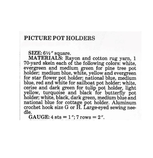 Vintage Crochet Pattern Fun Retro Picture Pot Holders PDF Instant Digital Download Flowers Tree Sailboat Butterfly House Potholders