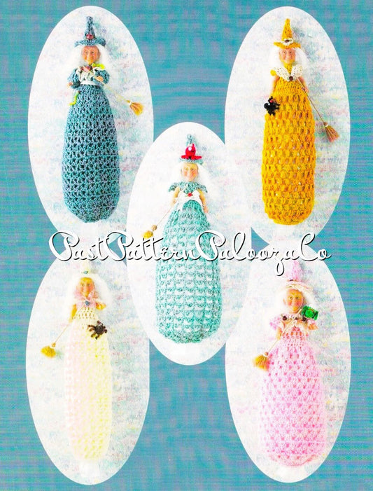 Vintage Crochet Pattern Kitchen Witch Bag Holders Catchers PDF Instant Digital Download 5 Witchy Designs Plastic Bag Organizers 10 Ply