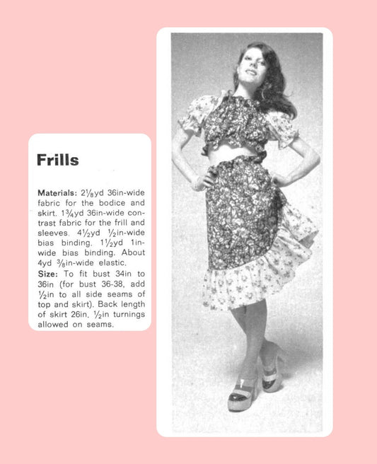 Vintage Sewing Pattern Womens Two Piece Frilly Dress Retro 70s PDF Instant Digital Download Gypsy Chic Flouncy Ruffled Crop Top and Skirt