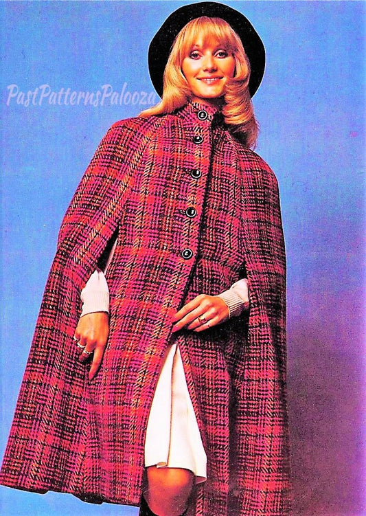 Vintage Sewing Pattern Womens Wool Tweed Cape Coat PDF Instant Digital Download Groovy A-Line Cloak 1973