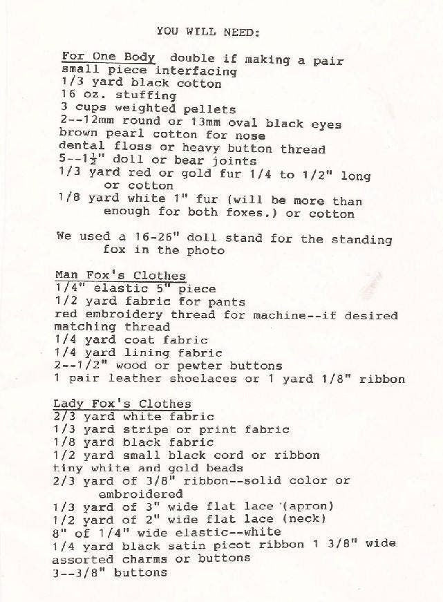 PDF Vintage Sewing Pattern Red Foxes Dolls with Clothing Instant Digital Download Retro Black Forest Austrian Foxes Sewn Soft Toys 22"