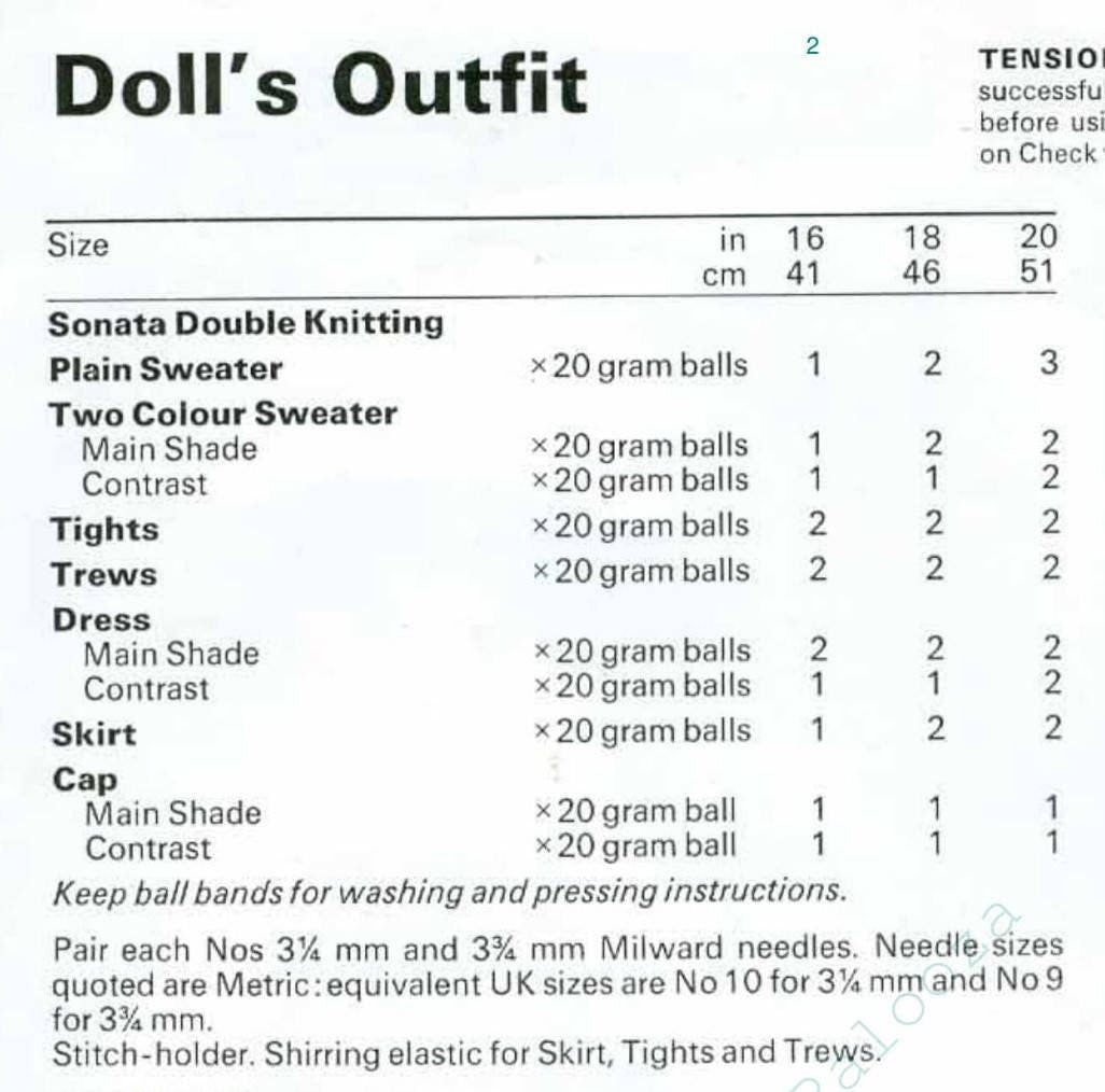 Offering a vintage 1977 instant PDF knitting pattern collection of easy to knit doll clothes for 16, 18 and 16 inch dolls, seven matching pieces in total!