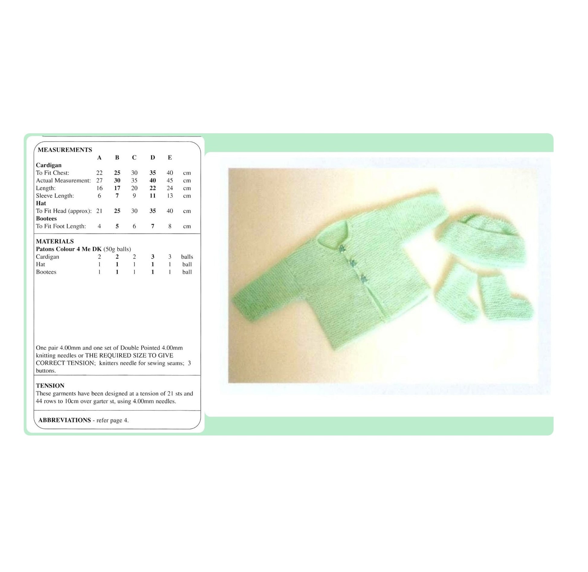 Easy knit pattern is ideal for beginners and includes a 3-button cardigan jacket, hat and booties, too cute!