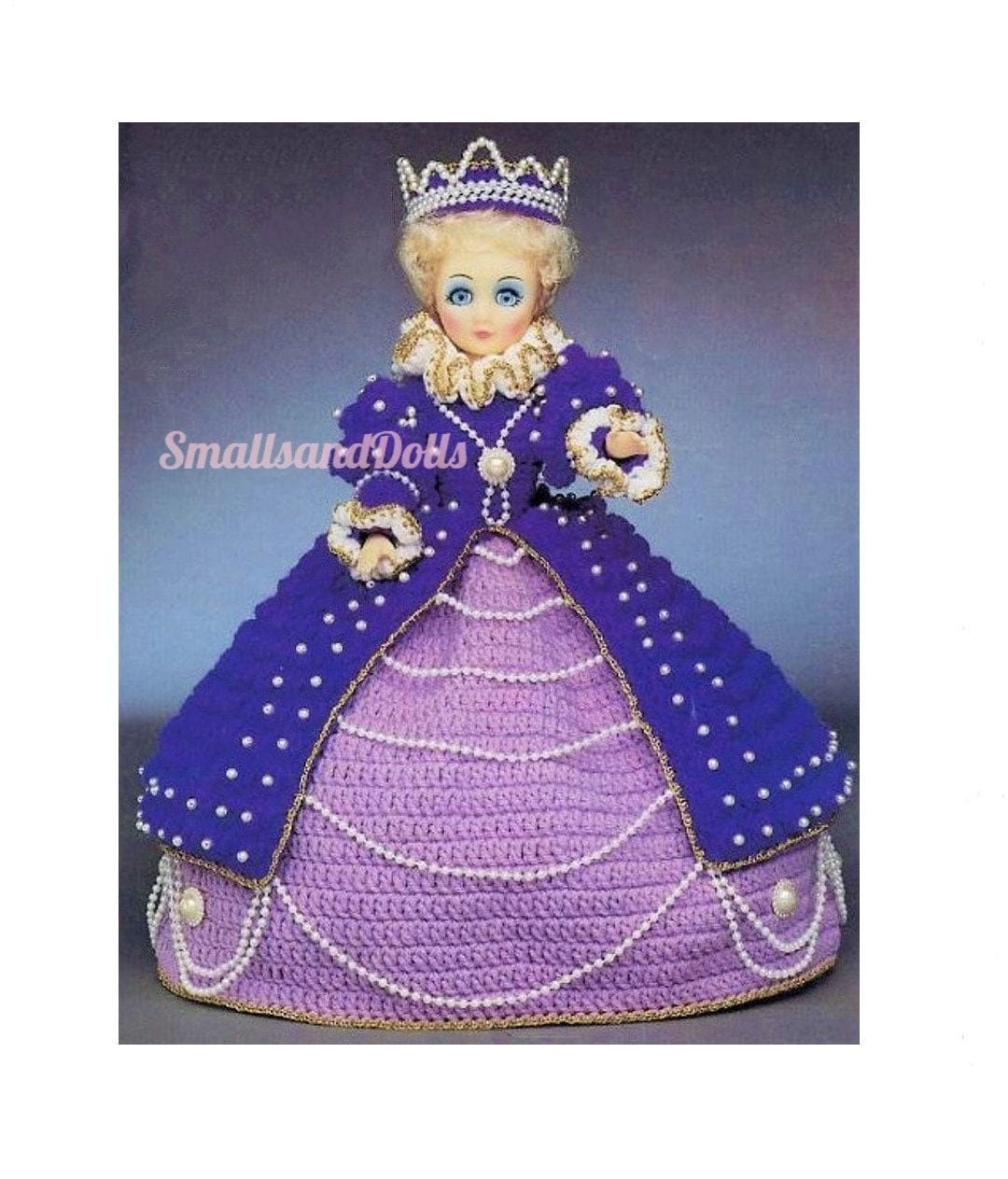 Vintage Bed Doll 15" Crochet Pattern Queen of Pearls Fashion Doll PDF Instant Digital Download Royal Gown Crown 10 Ply