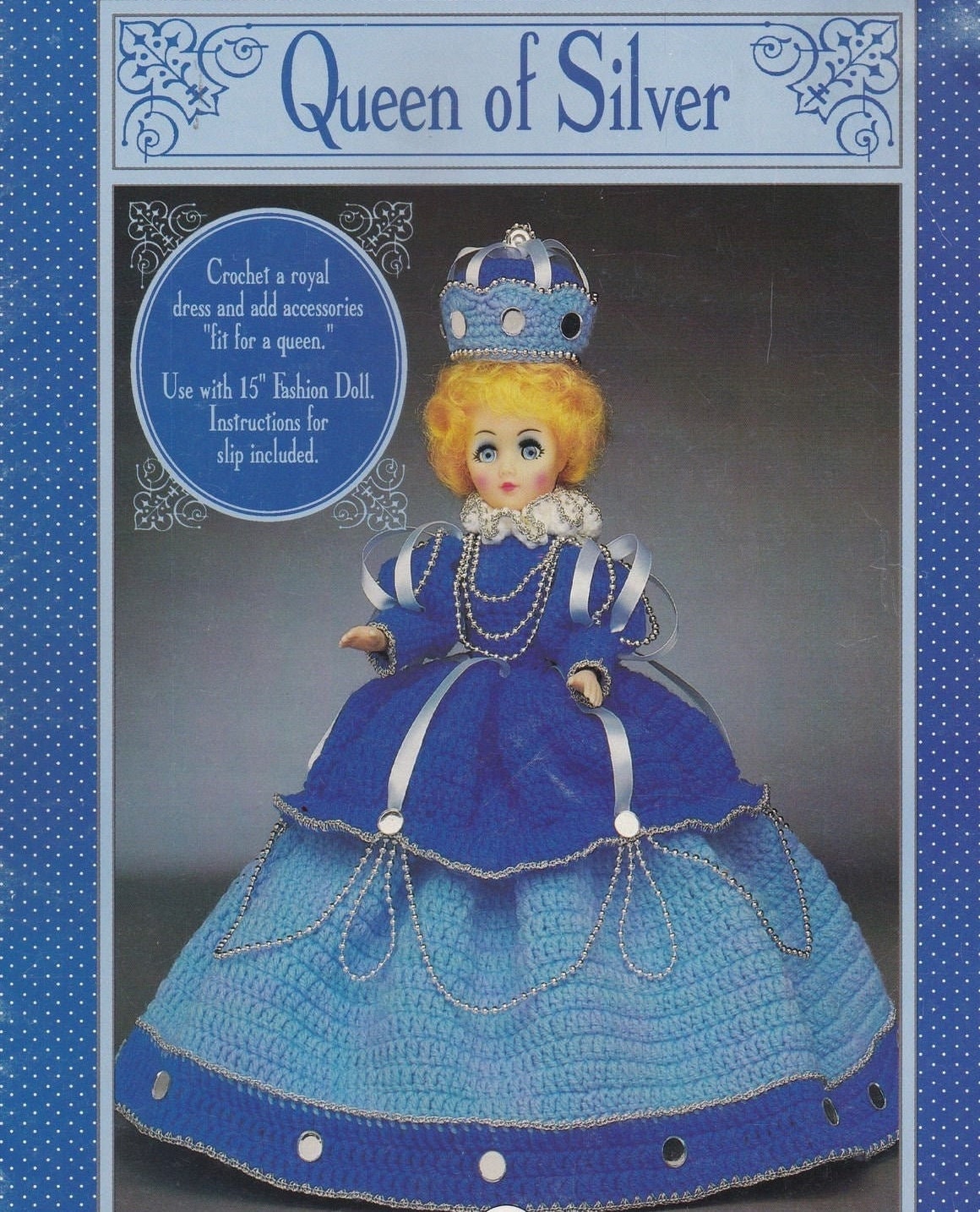 Offering a vintage digital PDF pattern for crochet to make a beautiful "Queen of Silver" Bed Doll outfit!