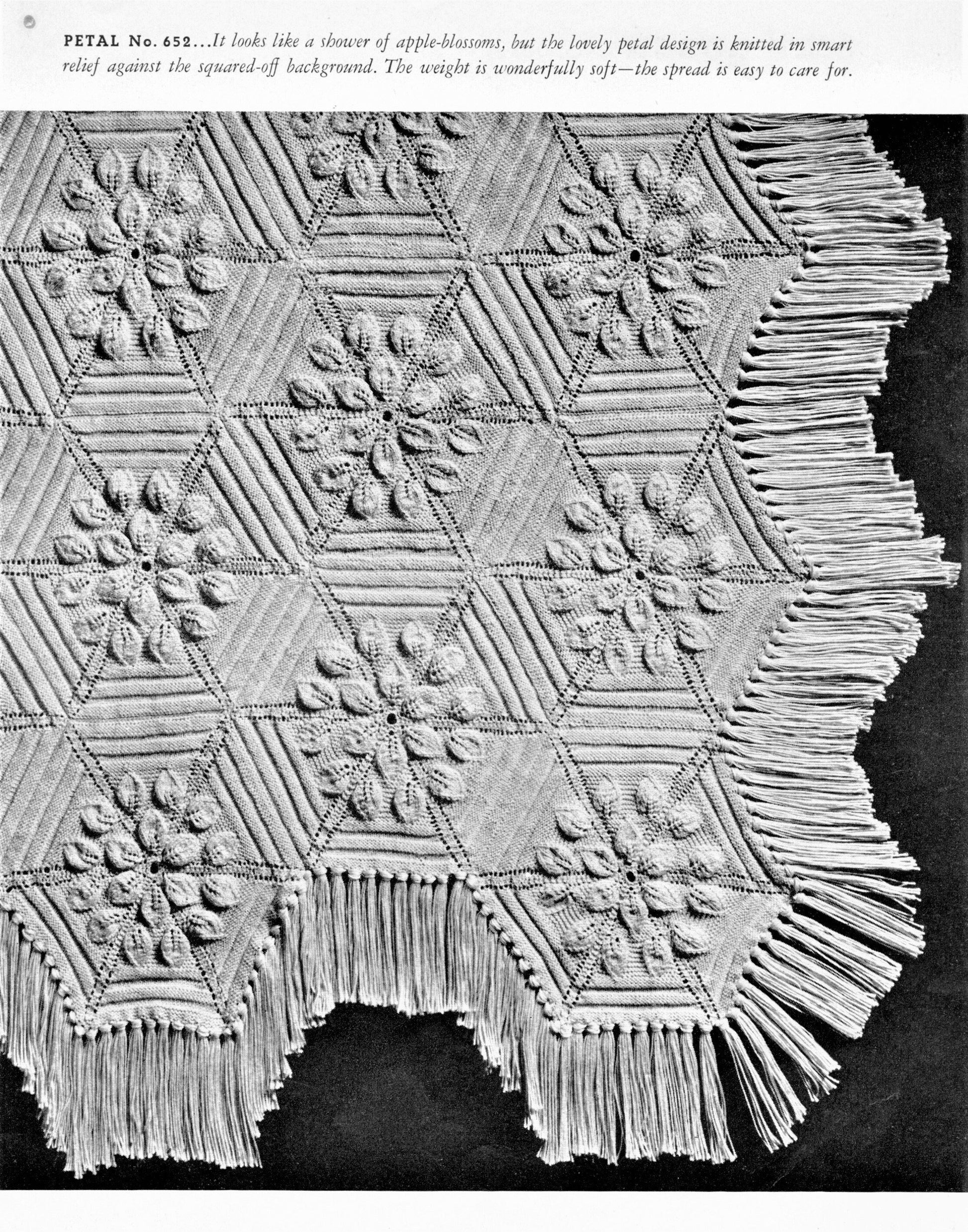Knitting - "Petal" - Apple Blossom Petal hexagons with a fringy border.