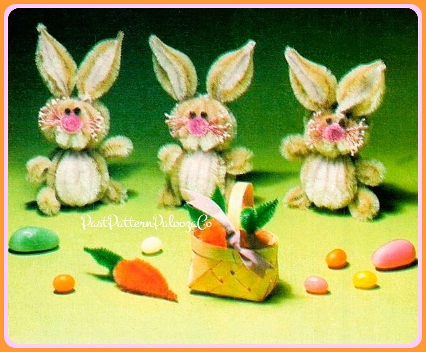 Vintage Chenille Easter Bunnies with Carrot Pipe Cleaner Craft Pattern PDF Instant Digital Download Bunny Rabbit Bump Chenilles
