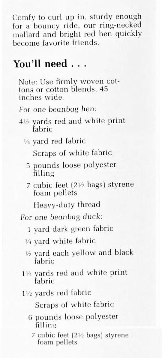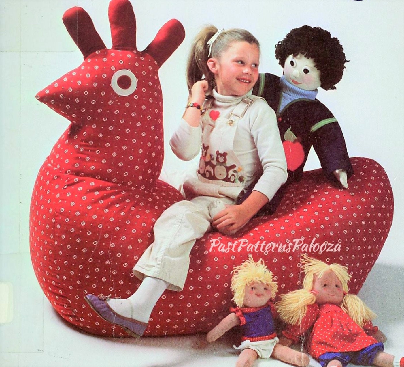 Vintage Childs Beanbag Cushion Chair Sewing Pattern Large Red Hen and Mallard Duck Sit On Ride On Fabric Toys PDF Instant Digital Download