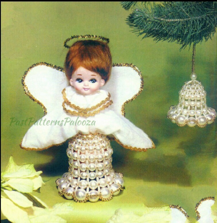 Vintage Christmas Beading Pattern 10" Pearl Bead Angel Tree Topper & Pearl Bell Ornament PDF Instant Digital Download Beaded Tree Trim Craft