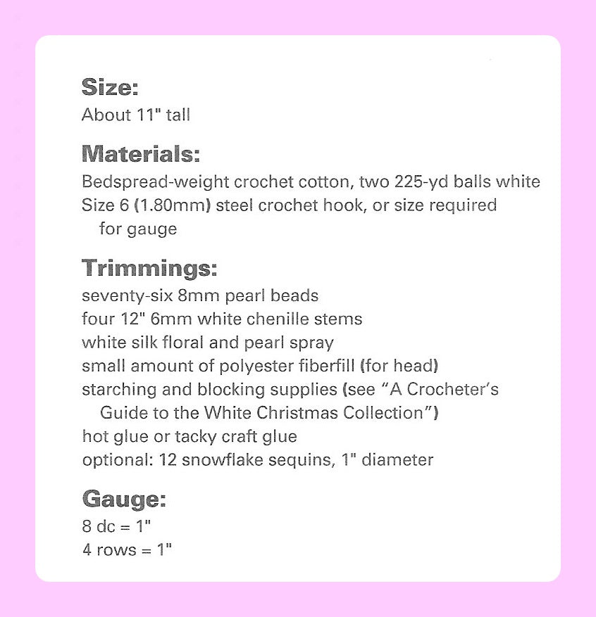 Offering a vintage crochet PDF pattern to make a stunning Treetop angel in white cotton thread!