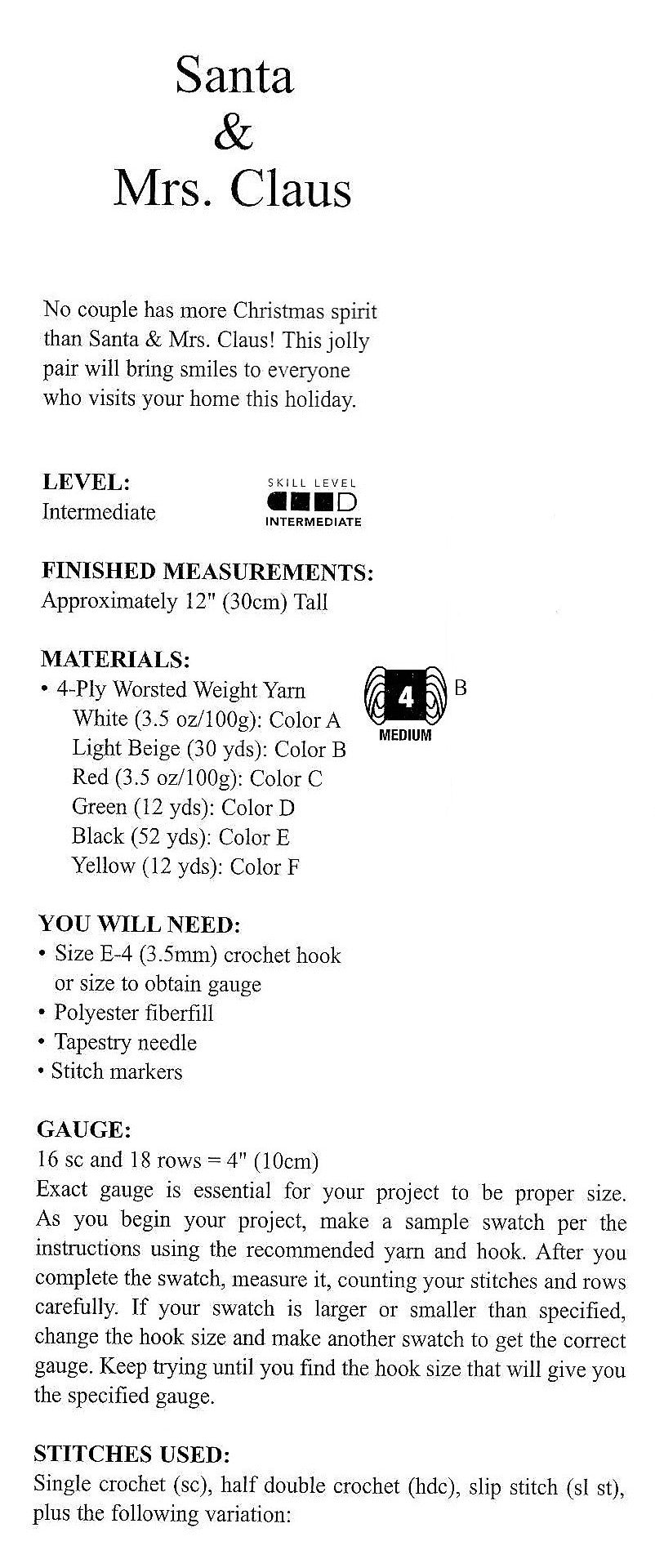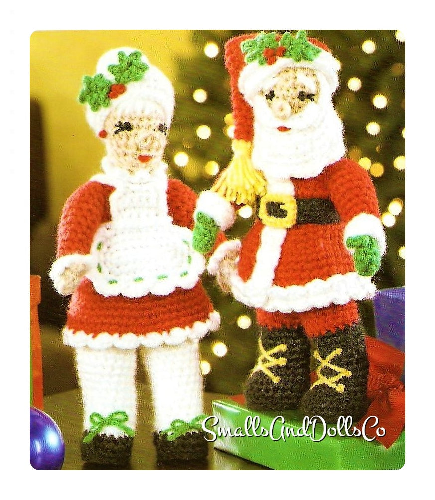 Vintage Christmas Crochet Pattern 12" Mr and Mrs Santa Claus Soft Toy Dolls PDF Instant Digital Download Xmas Amigurumi 10 Ply