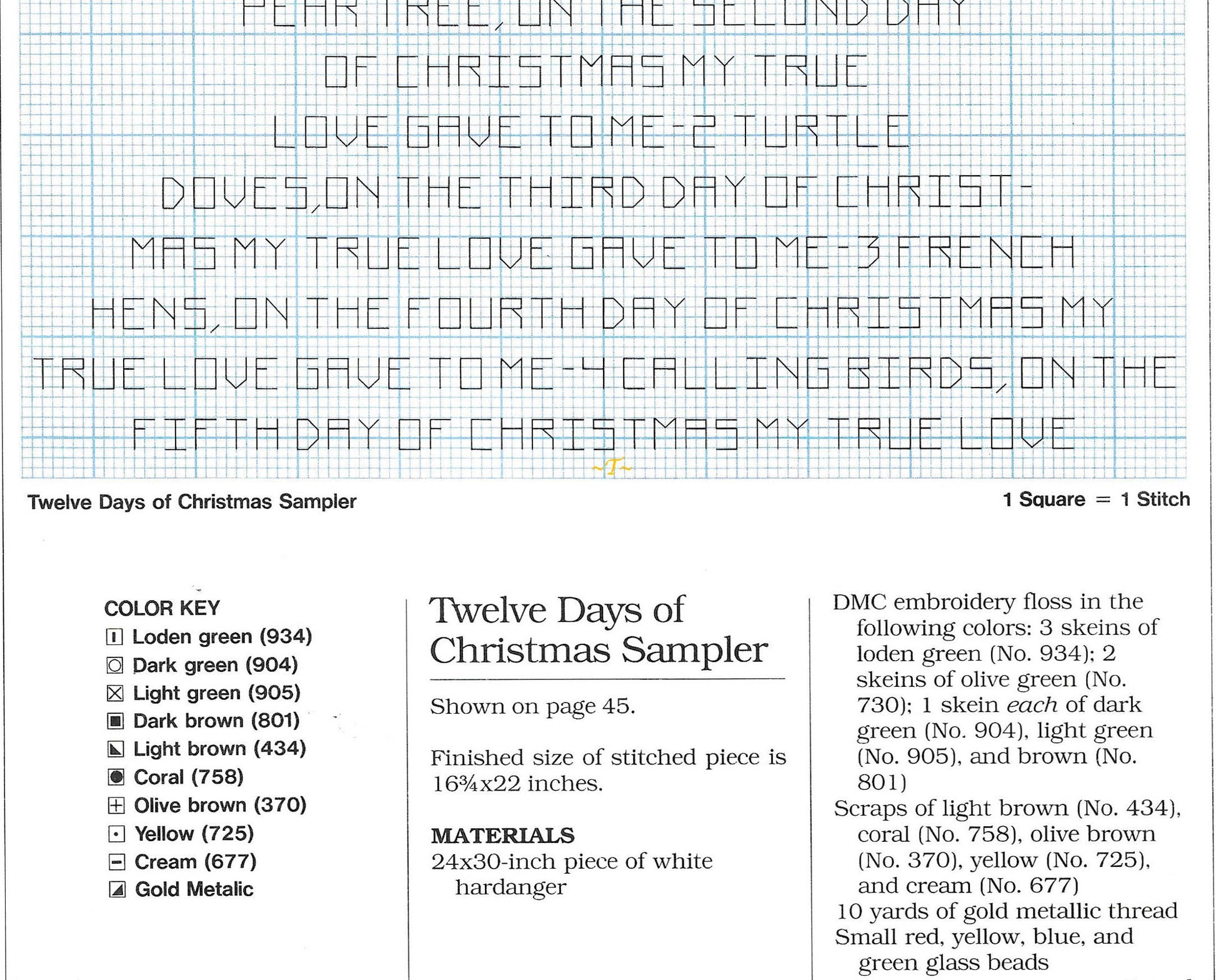 Offering a vintage digital PDF Christmas counted cross stitch pattern to make a beautiful The Twelve Days of Christmas sampler!