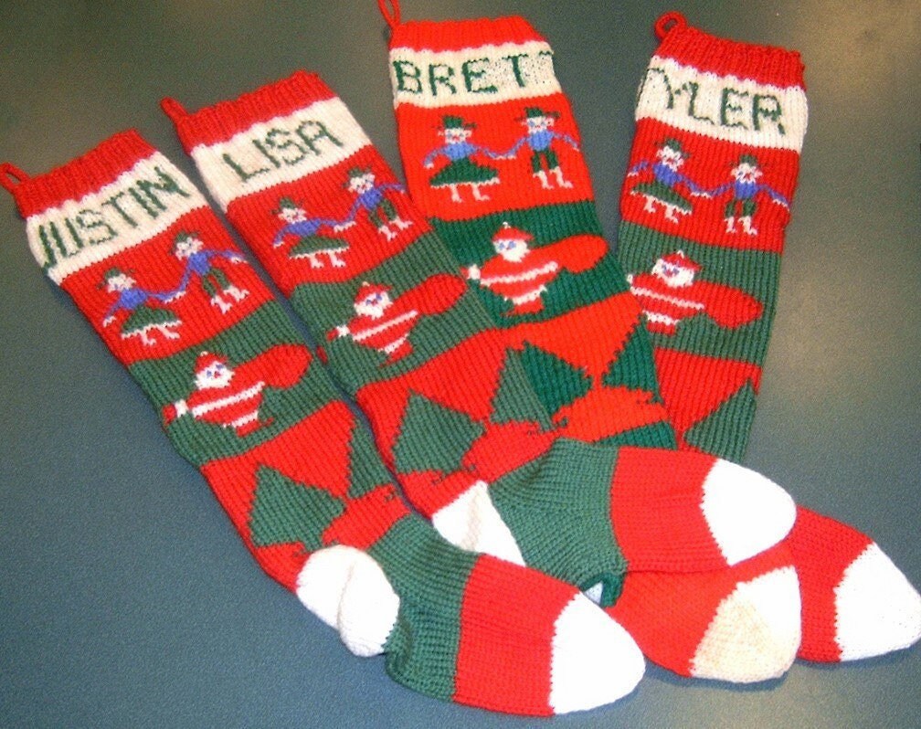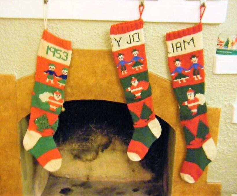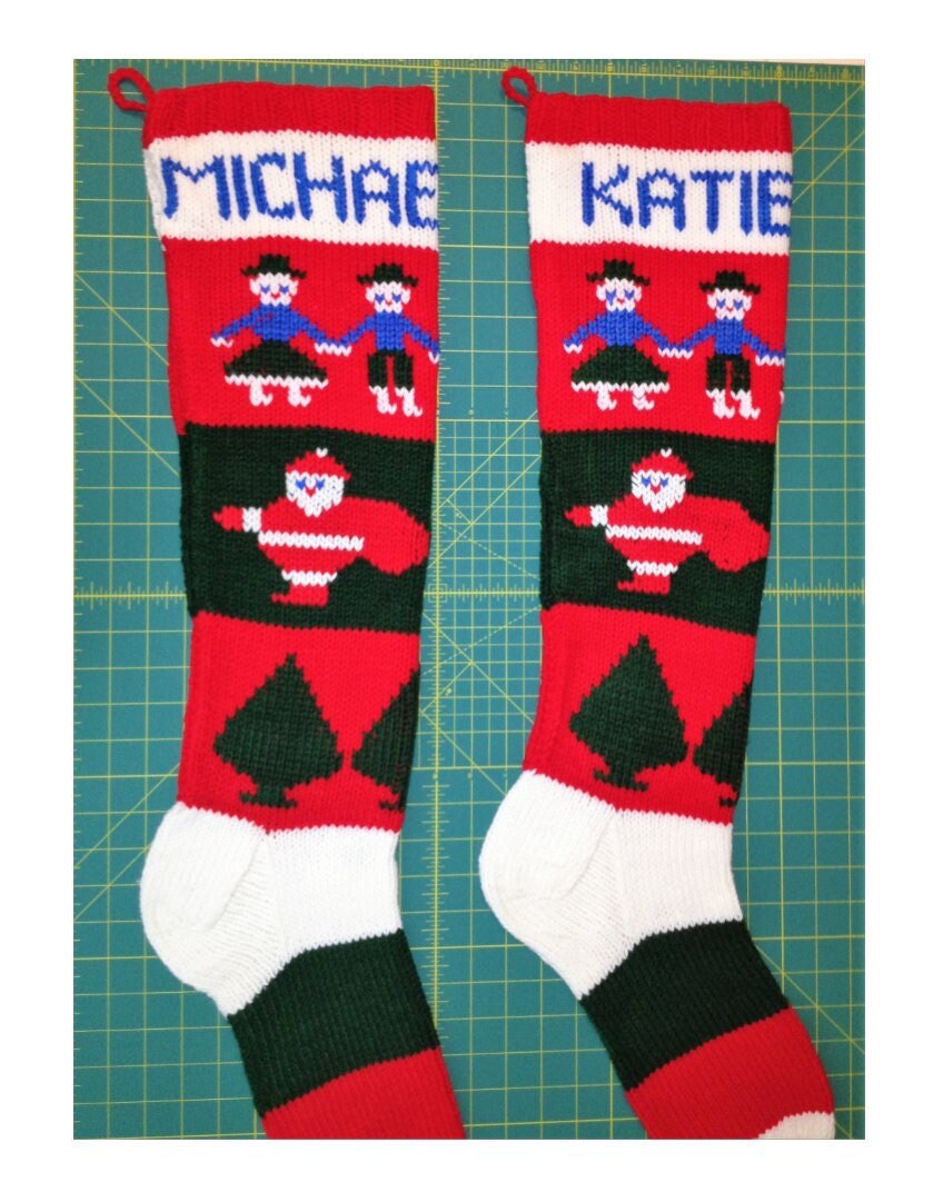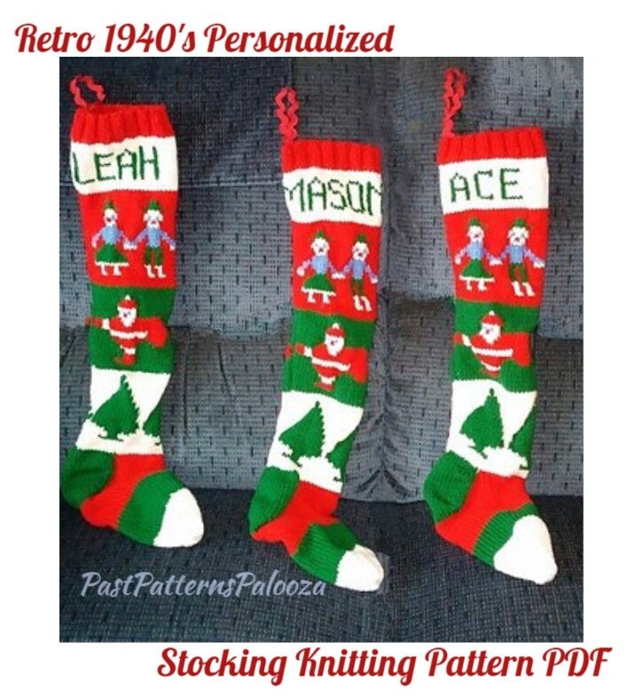 Vintage Christmas Stocking Knitting Pattern Retro Personalized 1940s Nostalgic Design Children Santa Trees PDF Instant Digital Download