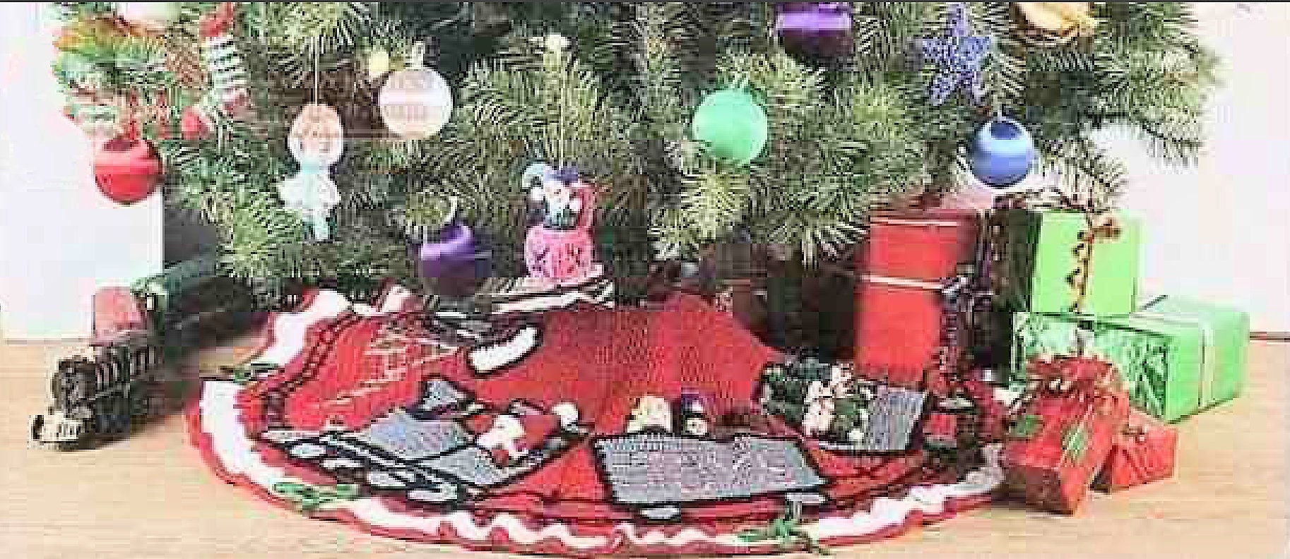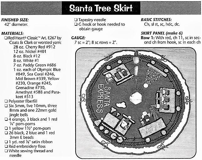 Vintage Christmas Tree Skirt Crochet Pattern 42" Santa Express Choo Choo Train PDF Instant Digital Download 10 Ply