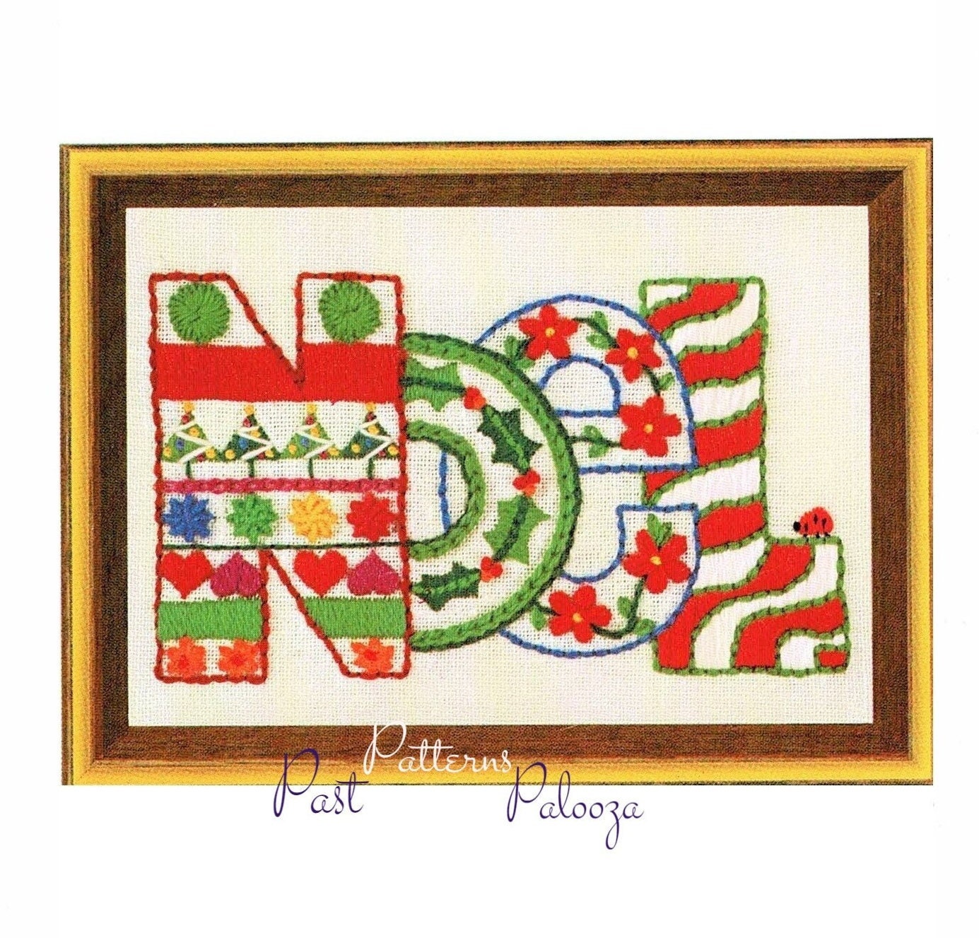 Vintage Crewel Embroidery Christmas Pattern NOEL PDF Instant Download Mini Stitchery Holiday Motif Sampler 5x7