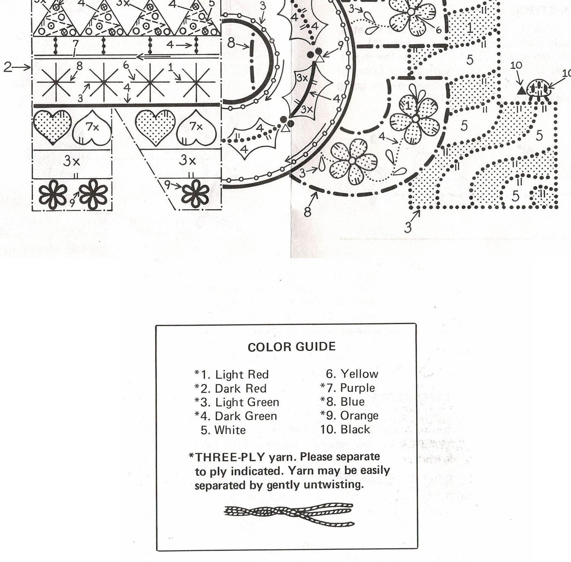Digital file includes: full color photo, helpful hints, suggested yarn colors, illustrated stitch chart with charted/numbered diagram and color guide, step by step instructions and traceable pattern.
