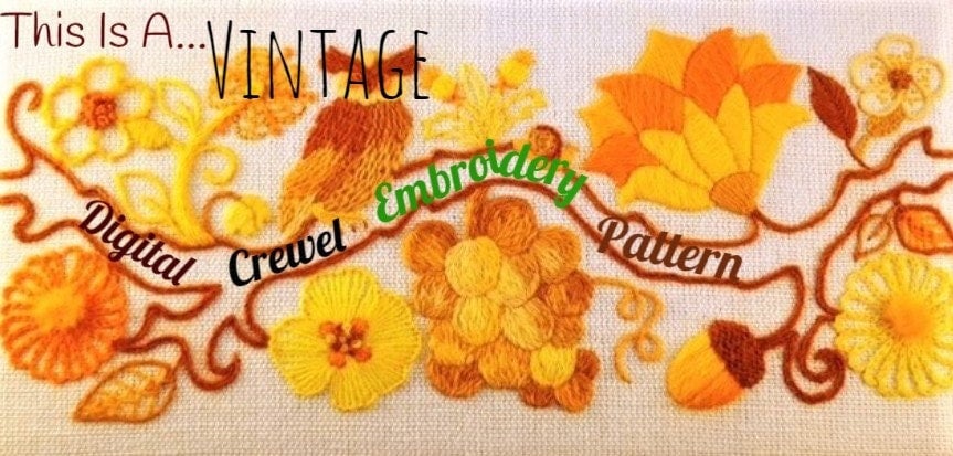 Offering a vintage digital PDF pattern to make a beautiful, crewel embroidered colorful garden of flowers!