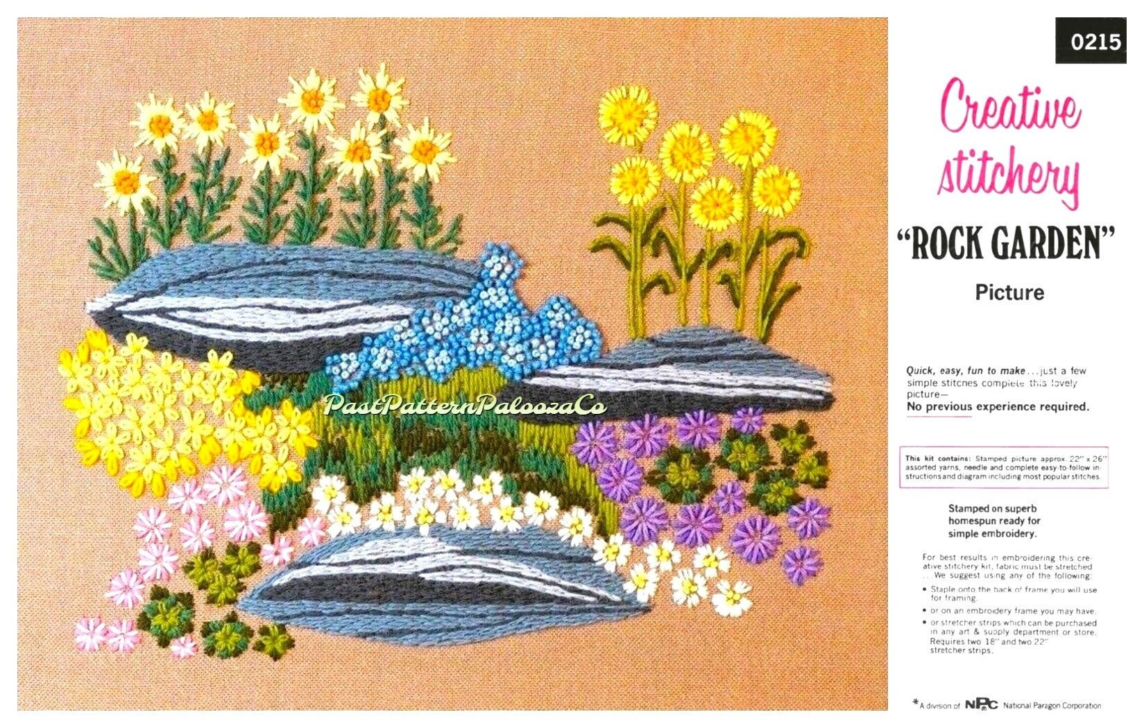 Vintage Crewel Embroidery Pattern Beautiful Rock Garden Flower Bed & Foliage Needlepoint PDF Instant Digital Download
