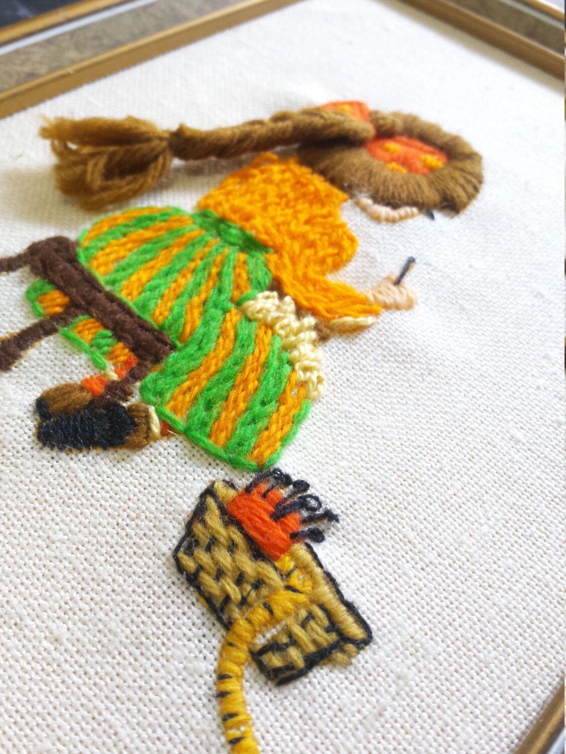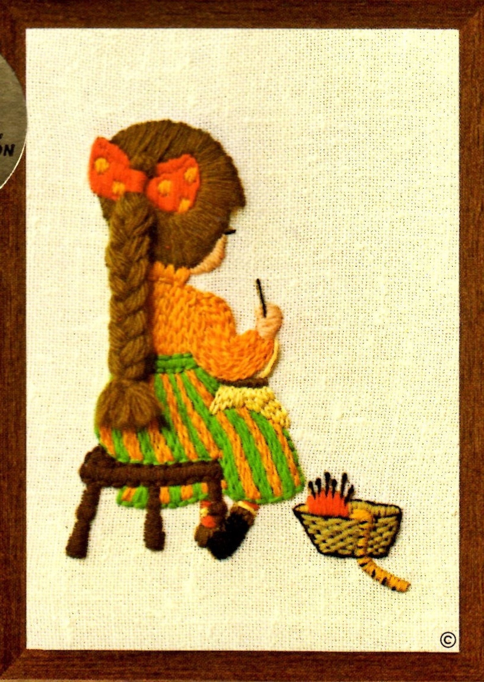 Offering a vintage retro 1970's crewel pattern to stitch charming, old fashioned girls - too cute~ !