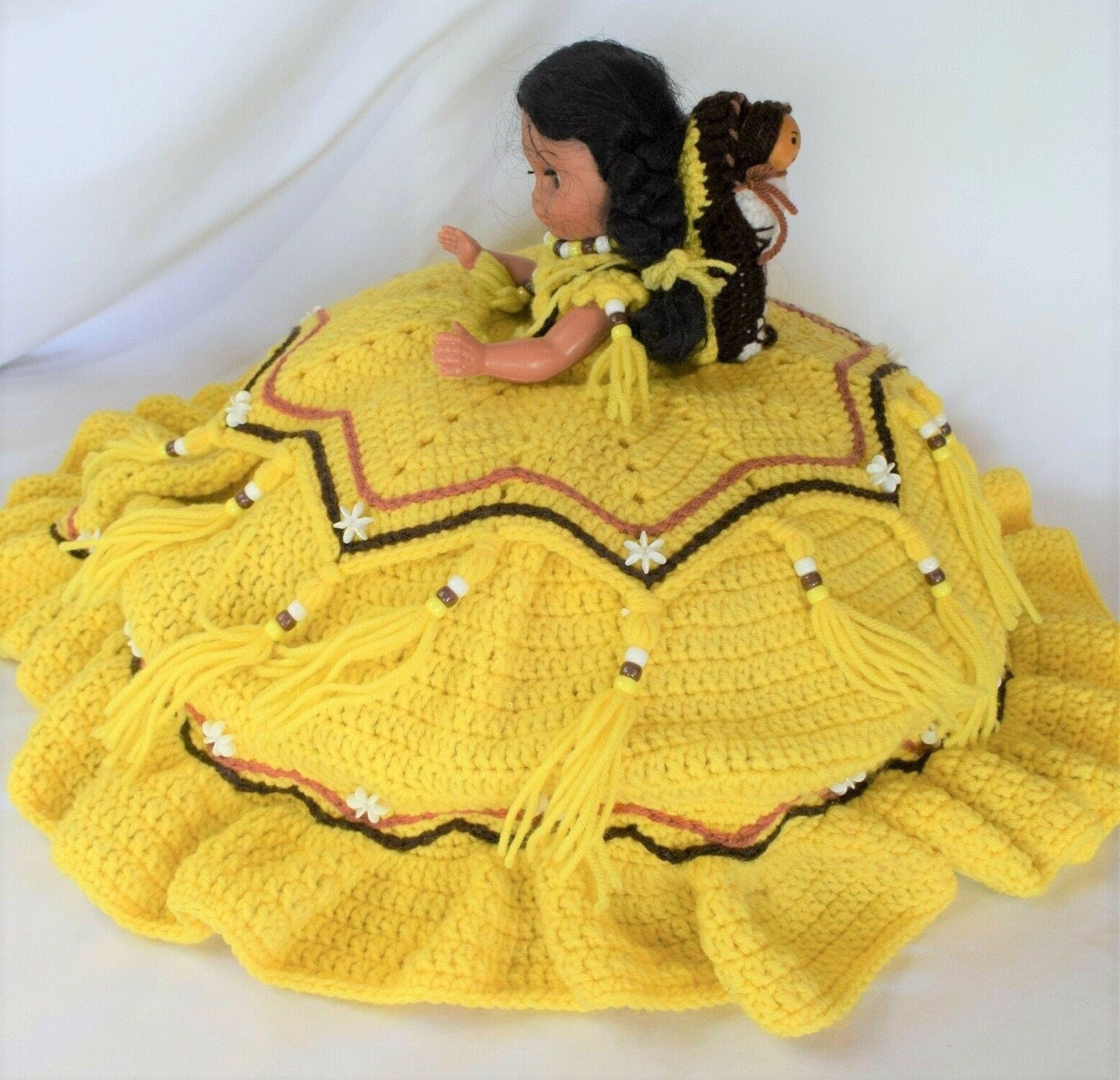 Vintage Crochet Pattern 13" Cactus Flower Indian Princess Pillow or Standing Bed Doll Outfit Dress PDF Instant Digital Download 10 Ply
