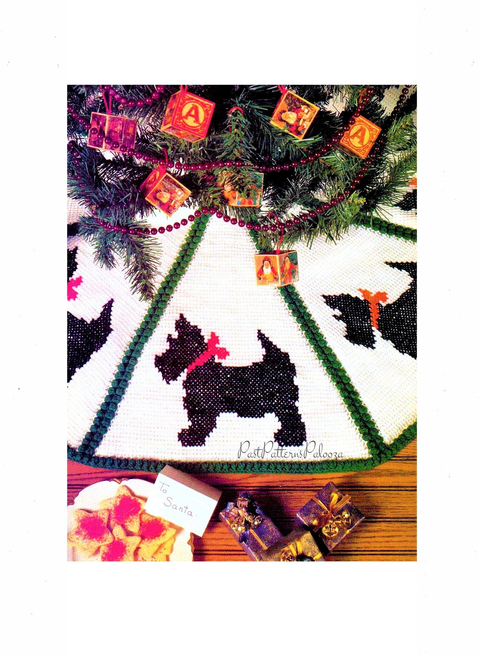 Vintage Crochet Pattern 44" Scottie Dog Christmas Tree Skirt PDF Instant Digital Download Afghan Tunisian Stitch Cross Stitch 4 Ply