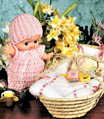 Vintage Crochet Pattern 7" 8" Baby Doll Clothes Layette and Bunting PDF Instant Digital Download Toy Doll Clothes Pajamas 3 Ply