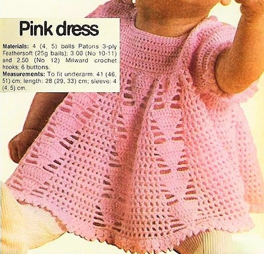 Vintage Crochet Pattern Baby Girl Pink Lacy Arrow Dress PDF Instant Digital Download 3 9 18 Months 3 Ply