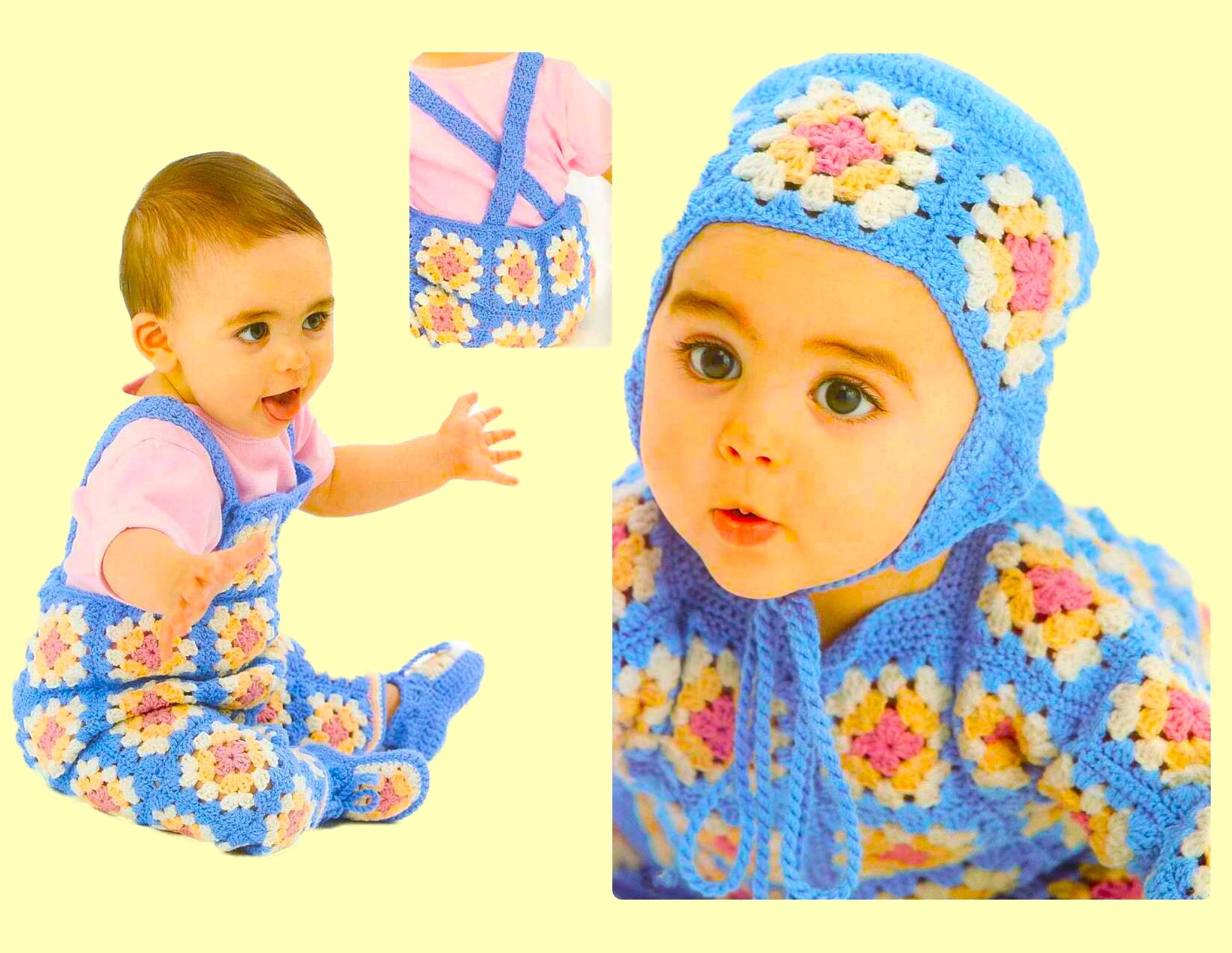 Offering a vintage digital PDF crochet pattern to make an adorable, nostalgic, Granny Square motif layette set for baby!!!!