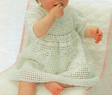 Offering a vintage PDF crochet patterns to make a pretty, lacy dress for baby in 4 ply - so sweet :).