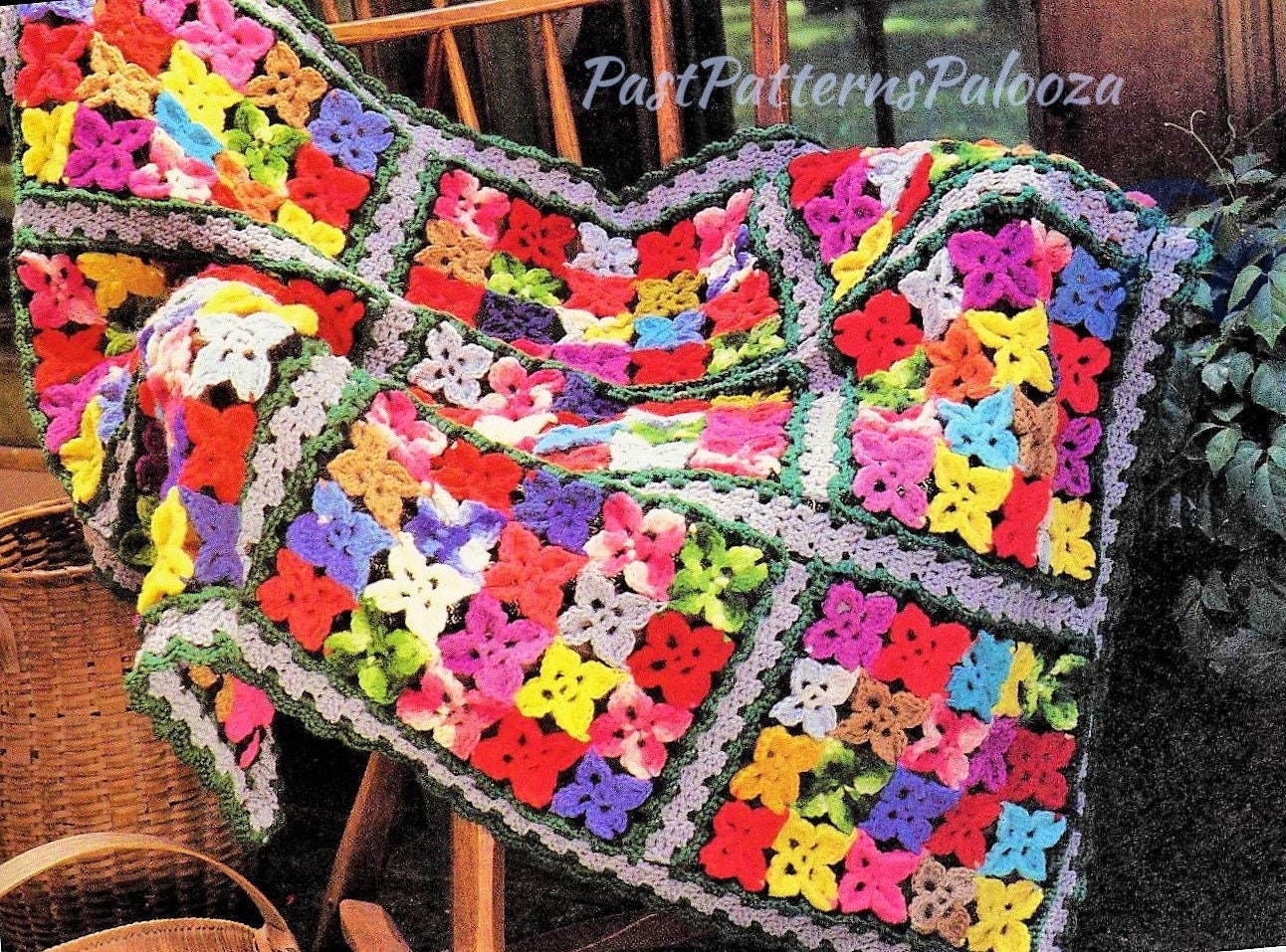 Vintage Crochet Pattern Blossom Flower Beds Afghan PDF Instant Digital Download Floral Garden Squares Scrapghan Scrap Blanket 10 Ply