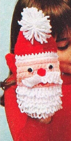 Offering a vintage PDF knitting pattern to make fun Santa mittens for kids that can double as hand puppets.