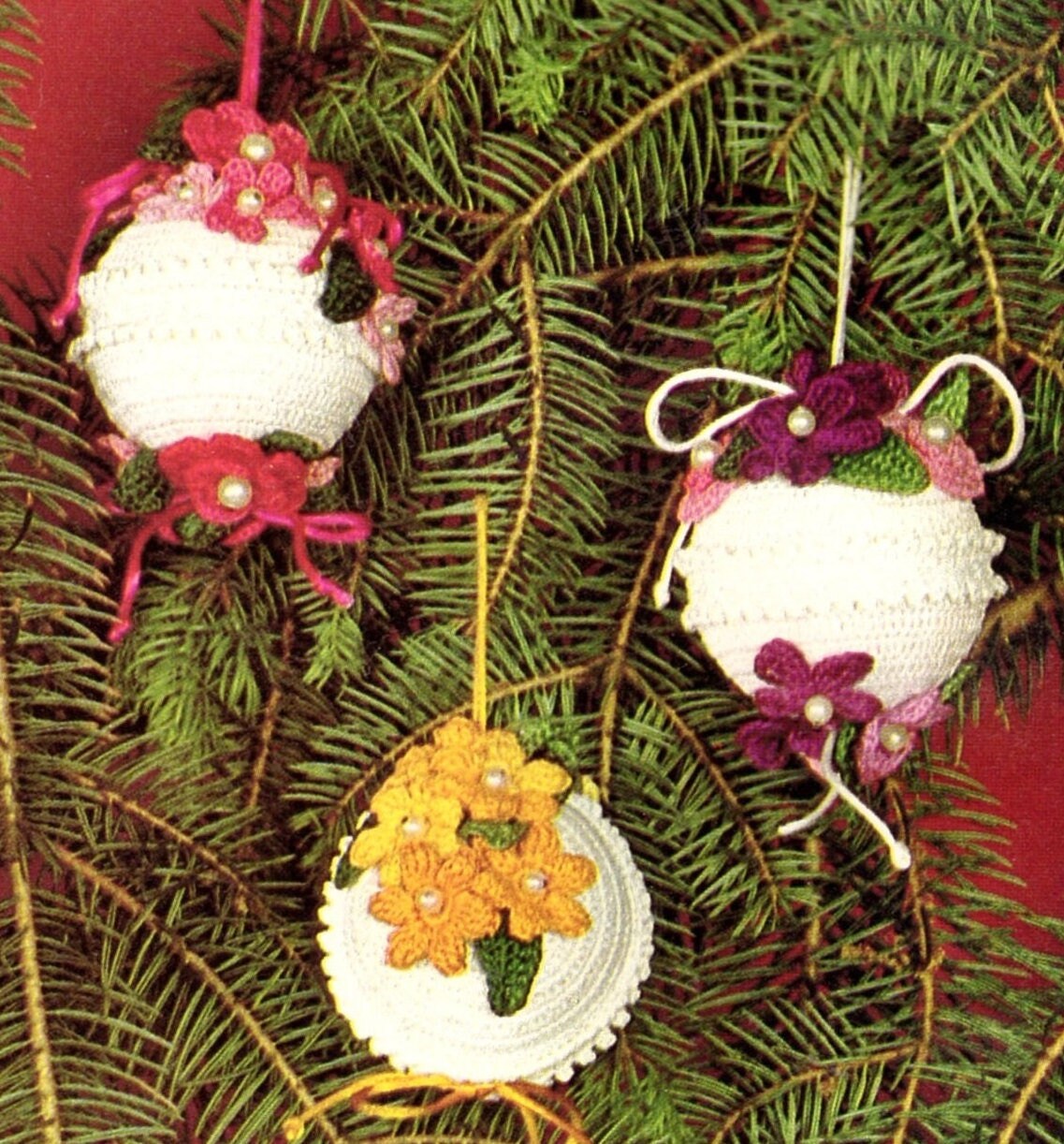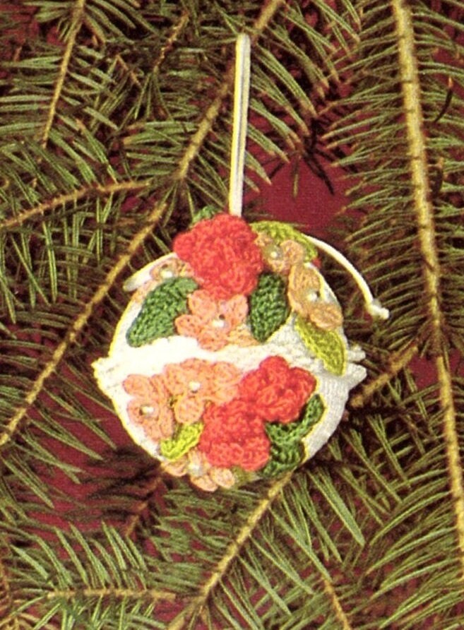 Vintage Crochet Pattern Flower Floral Christmas Tree Ball Ornament Covers Slipcovers PDF Instant Digital Download 6 Designs