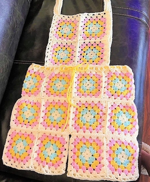 Vintage Crochet Pattern Granny Squares Shortalls Overalls PDF Instant Digital Download Retro 70s Boho Bib Shorts Groovy Hippie Wear