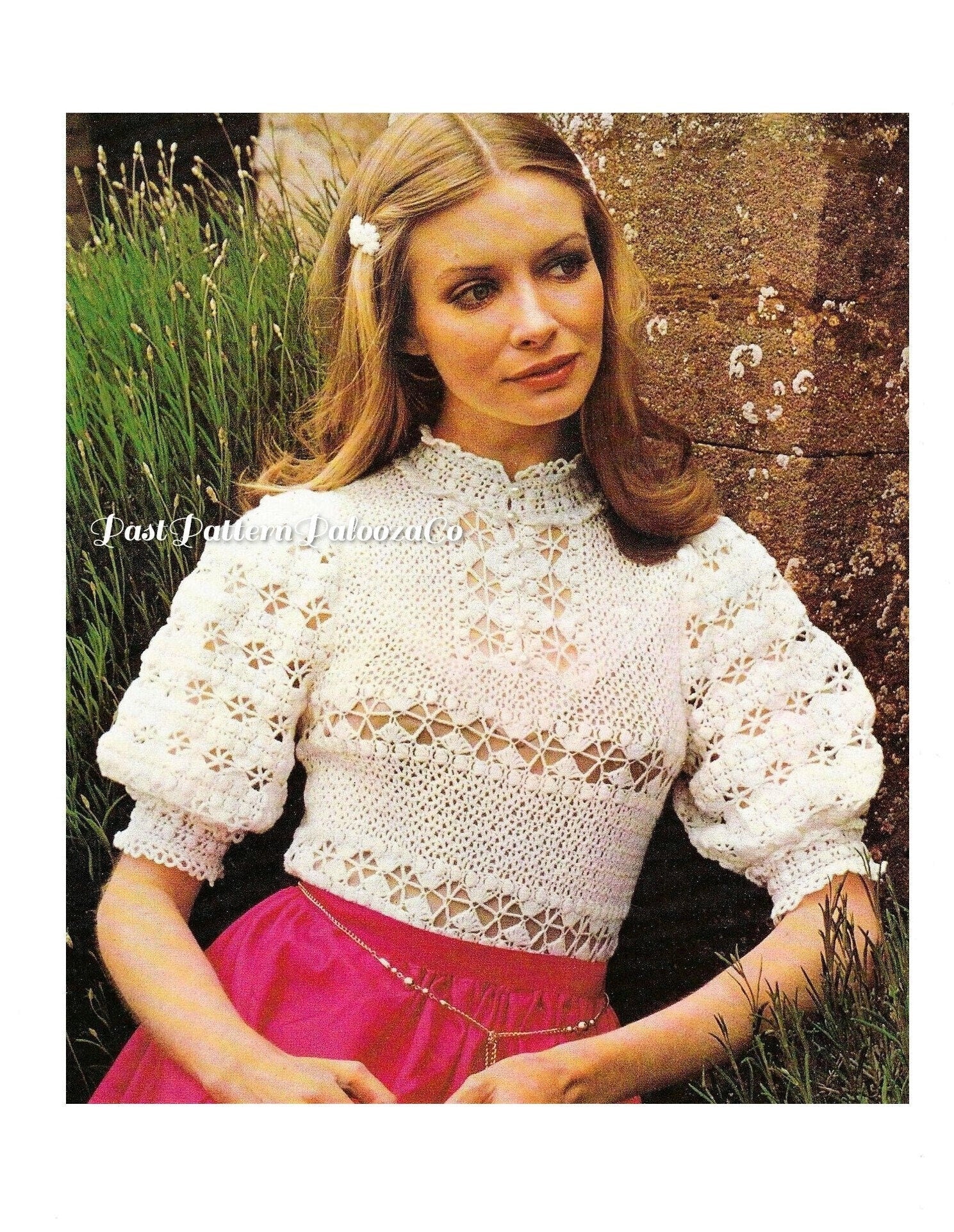 Vintage Crochet Pattern Lacy Victorian Top Romantic Puff Sleeved Blouse PDF Instant Digital Download 2 Ply Lace