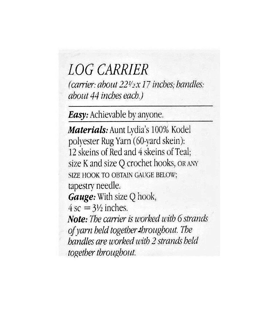 Vintage Crochet Pattern Log Carrier Fireplace Wood Holder With Handles PDF Instant Digital Download