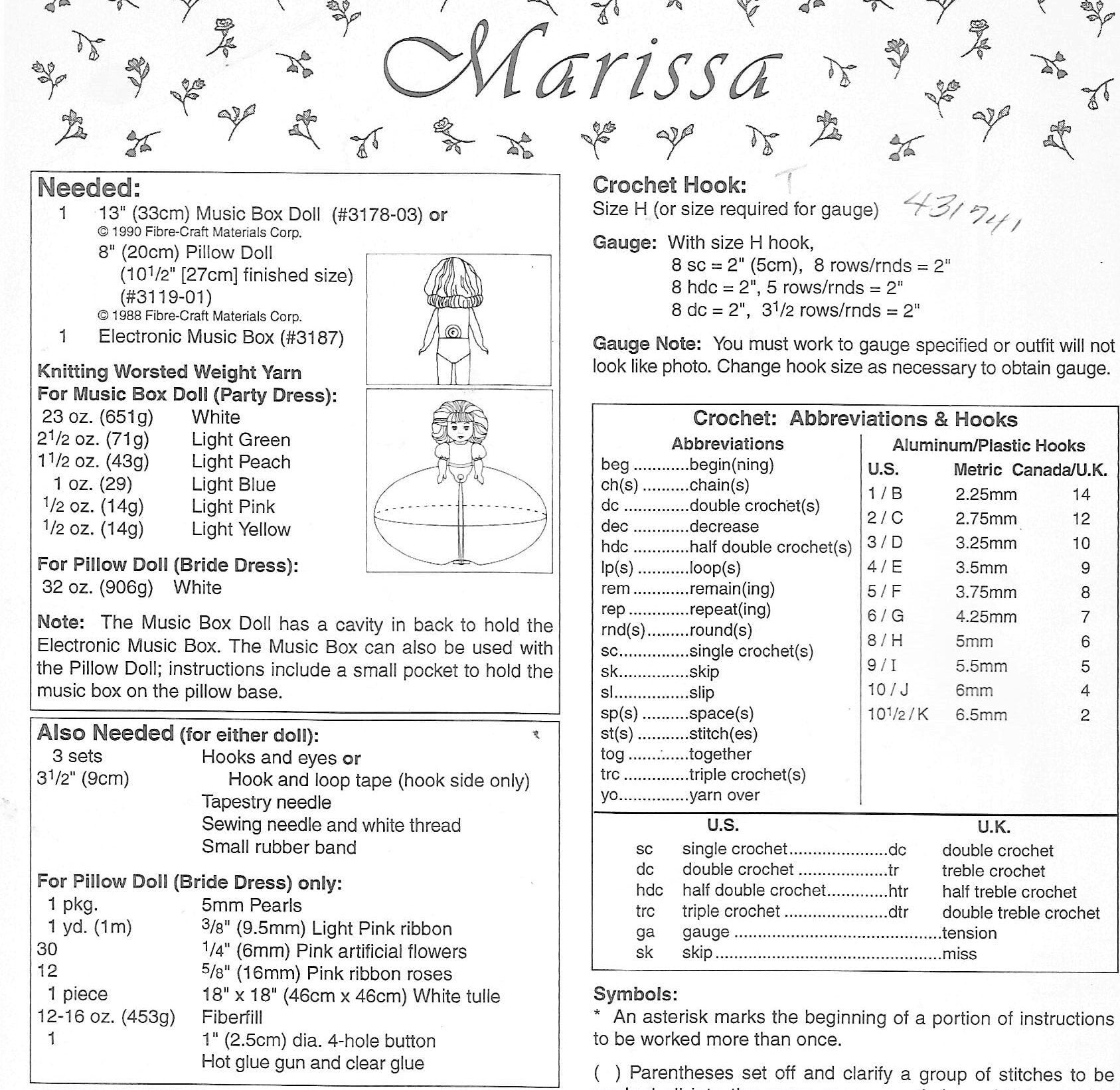 Offering a vintage PDF crochet pattern to make two different outfits for a bed, music box and/or pillow doll -
