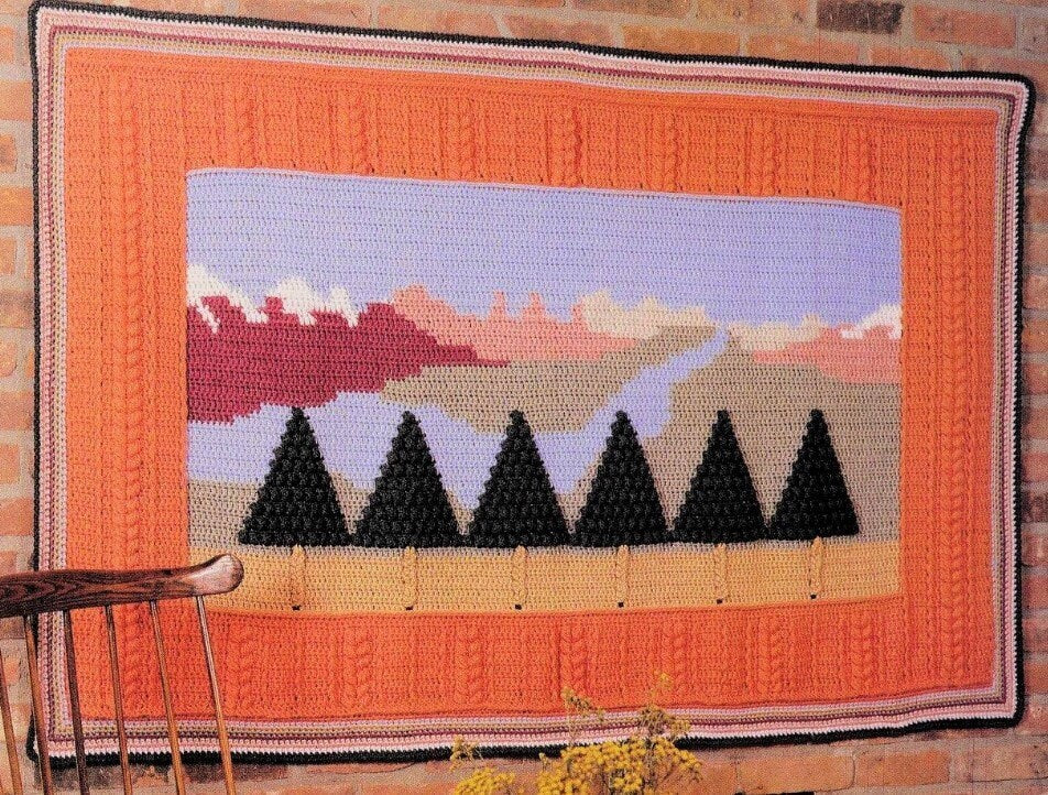Vintage Crochet Pattern Rocky Mountains Evergreens Afghan Throw or Wall Hanging PDF Instant Digital Download Canadian Landscape 10 Ply
